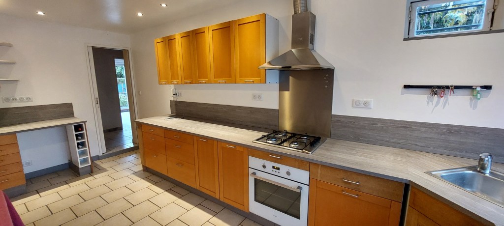 Dans une rue calme, Maison de 120 m² comprenant une cuisine aménagée et équipée fermée, un salon-séjour avec cheminée, une suite parentale en rez-de- chaussée avec une salle d’eau à finir d’aménager, WC, à l’étage : ‘4 chambres avec placard, WC et salle de bain. Jardin. Terrain entièrement clos de 328 m² Double vitrage pour toutes les menuiseries, volets roulants.